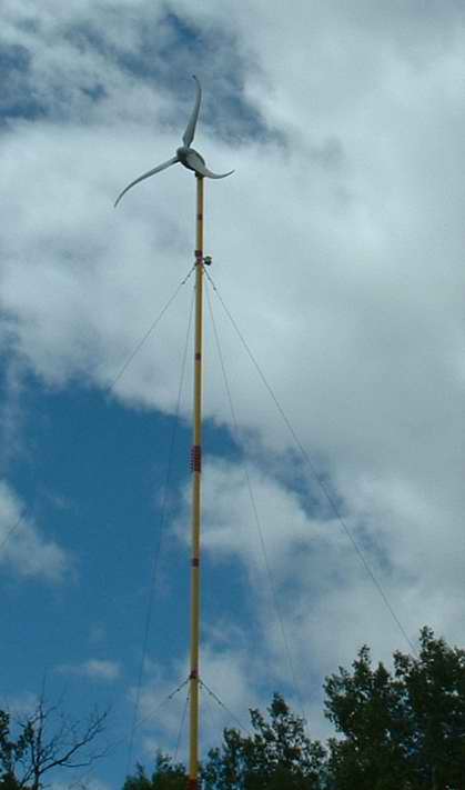 Skystream is a 1.8 kW unit manufactured by Southwest Windpower, specifically aimed at the grid-connect market. It is a very reliable and attractive unit. BC Hydro has a net-metering policy that allows customers to connect grid compliant producing equipment to their grid through an application process. Once in place the windgenerator will put power into the grid, essentially using it as the system battery. This runs the electric-use meter backwards, allowing an offset to the use from the grid. The manufacturer has designed the size of the unit to be roughly the size needed to annually power the needs of an average North American home in a good wind producing location.